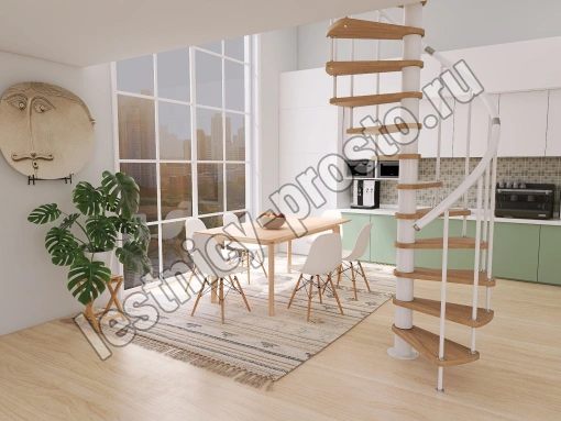 Винтовая лестница Prosto Spiral White D140см, h303.9-348,1 см, бук