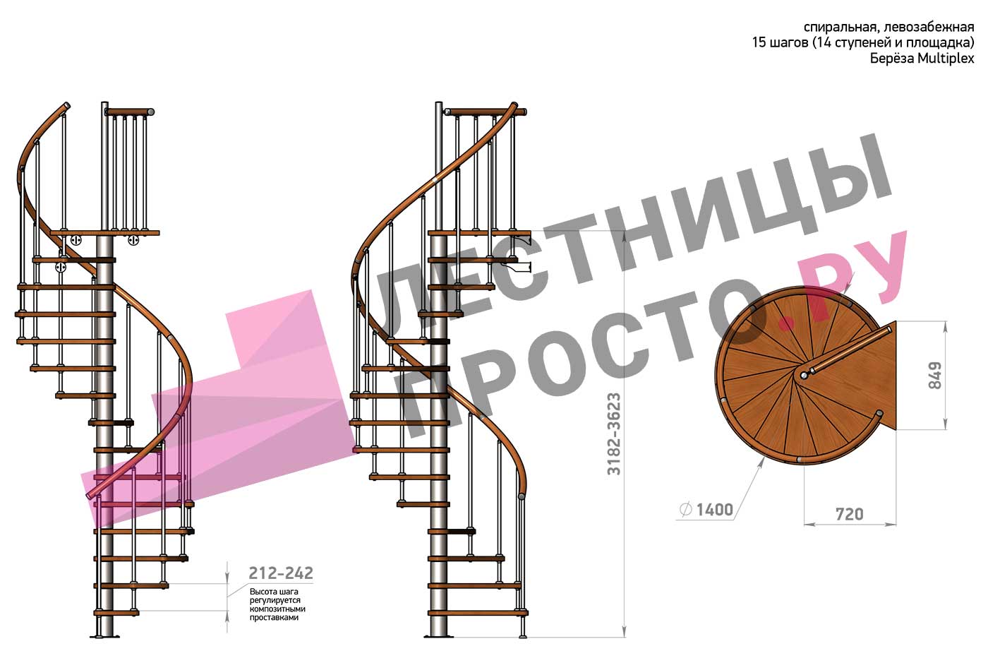 Винтовая лестница Prosto Spiral White D160см, h254.5-289.8 см
