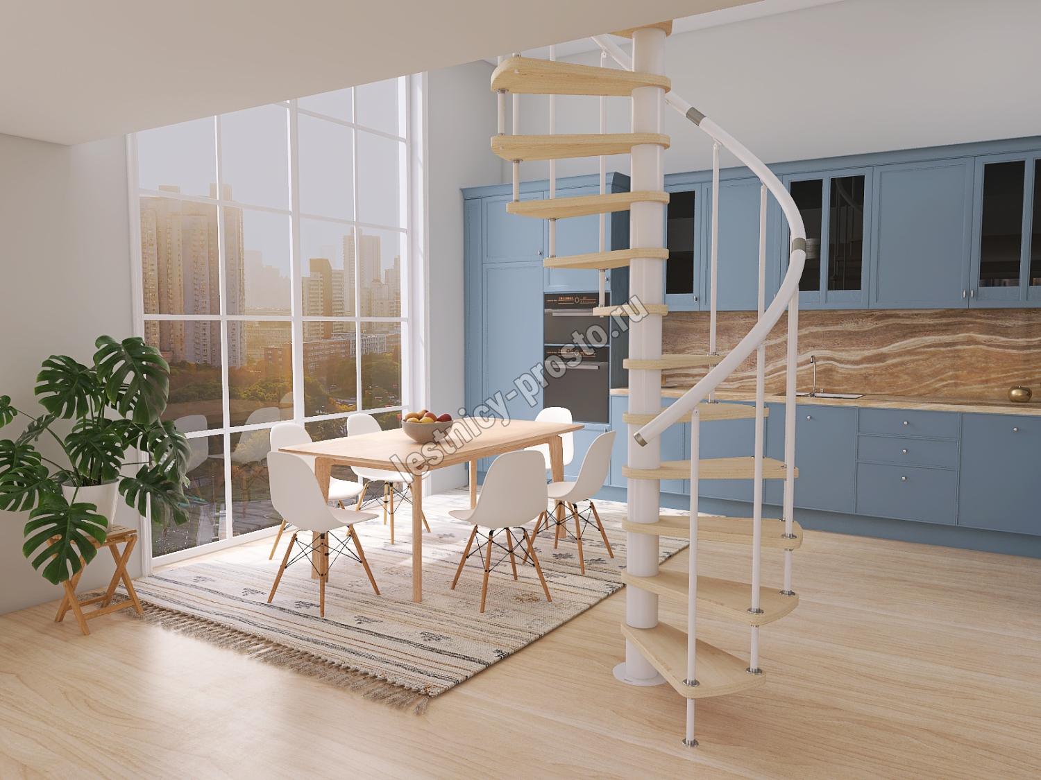 Винтовая лестница Prosto Spiral White D160см, h282.2-326,3 см, бук