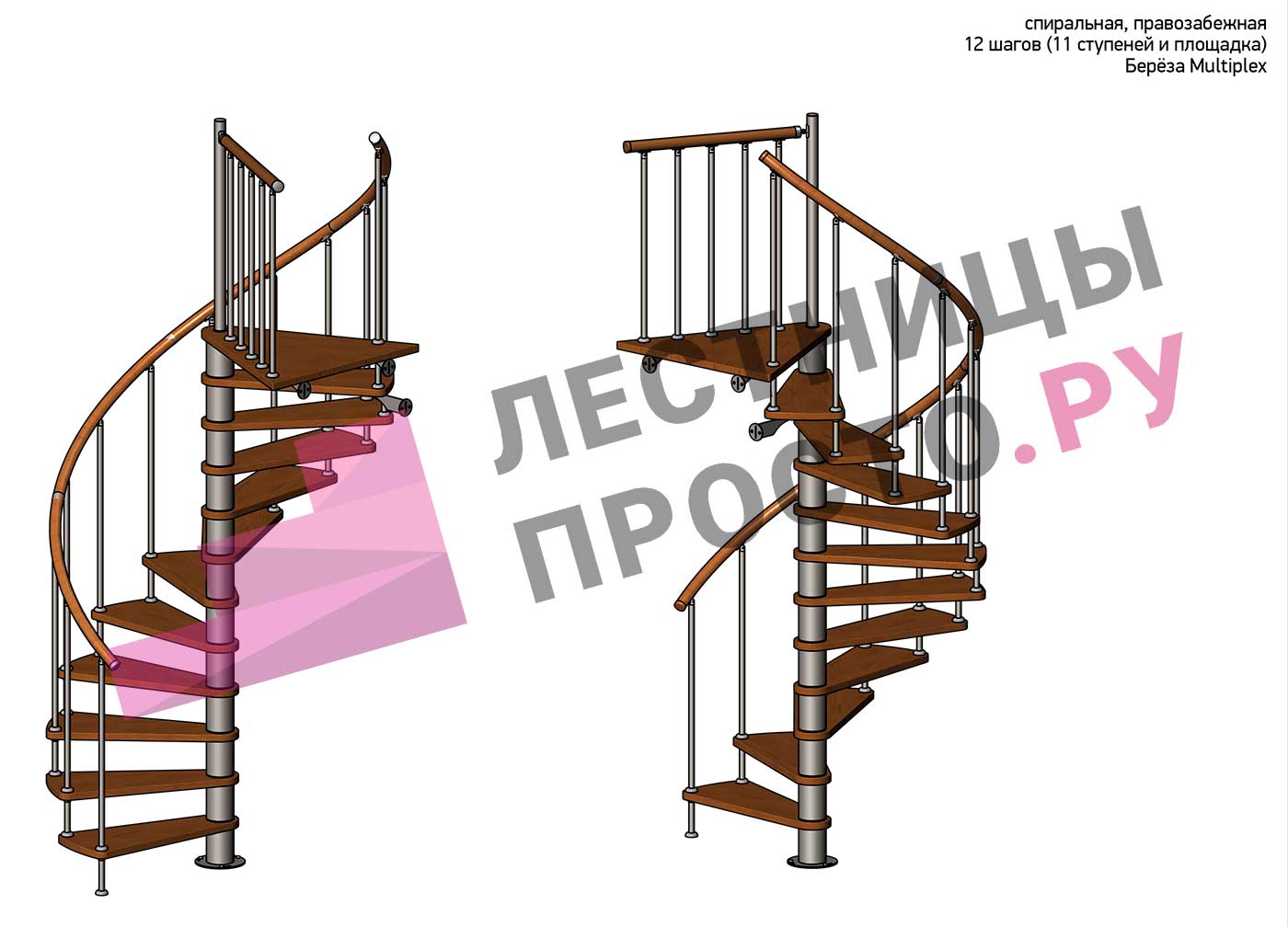 Винтовая лестница Prosto Spiral White D160см, h275.7-313.9 см