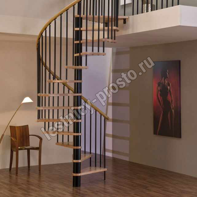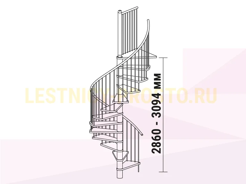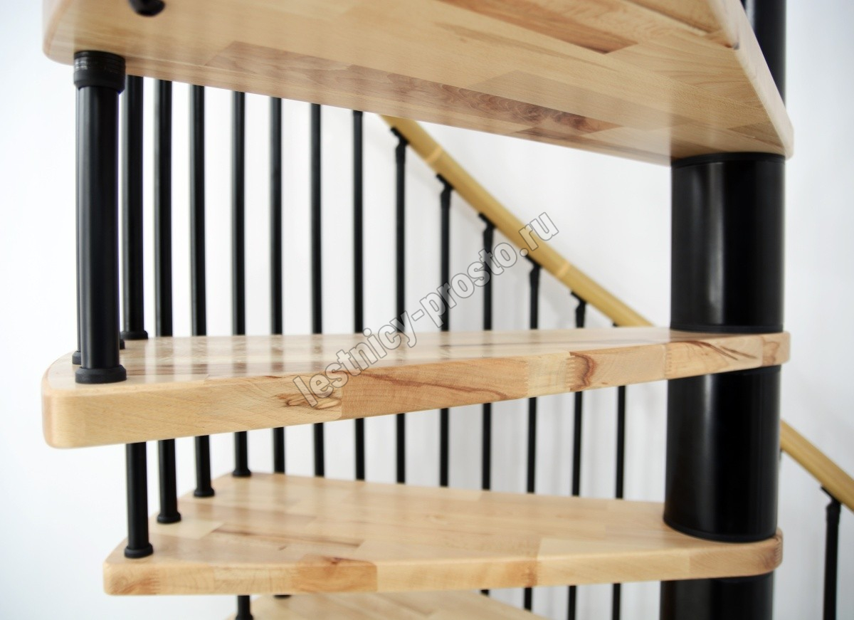 Лестница представлена в двух вариантах: с поворотом направо и с поворотом налево. Благодаря возможности регулировать высоту шага с помощью пластиковых вставок (входят в базовый комплект), высоту лестницы можно варьировать в пределах от 2860 до 3090 мм. Кроме того, купив дополнительную секцию для этой лестницы, можно поднять высоту до 3320 мм. Поручень изготовлен из массива дуба в тон ступеням. Ступени и поручень покрыты износостойким защитным лаком.