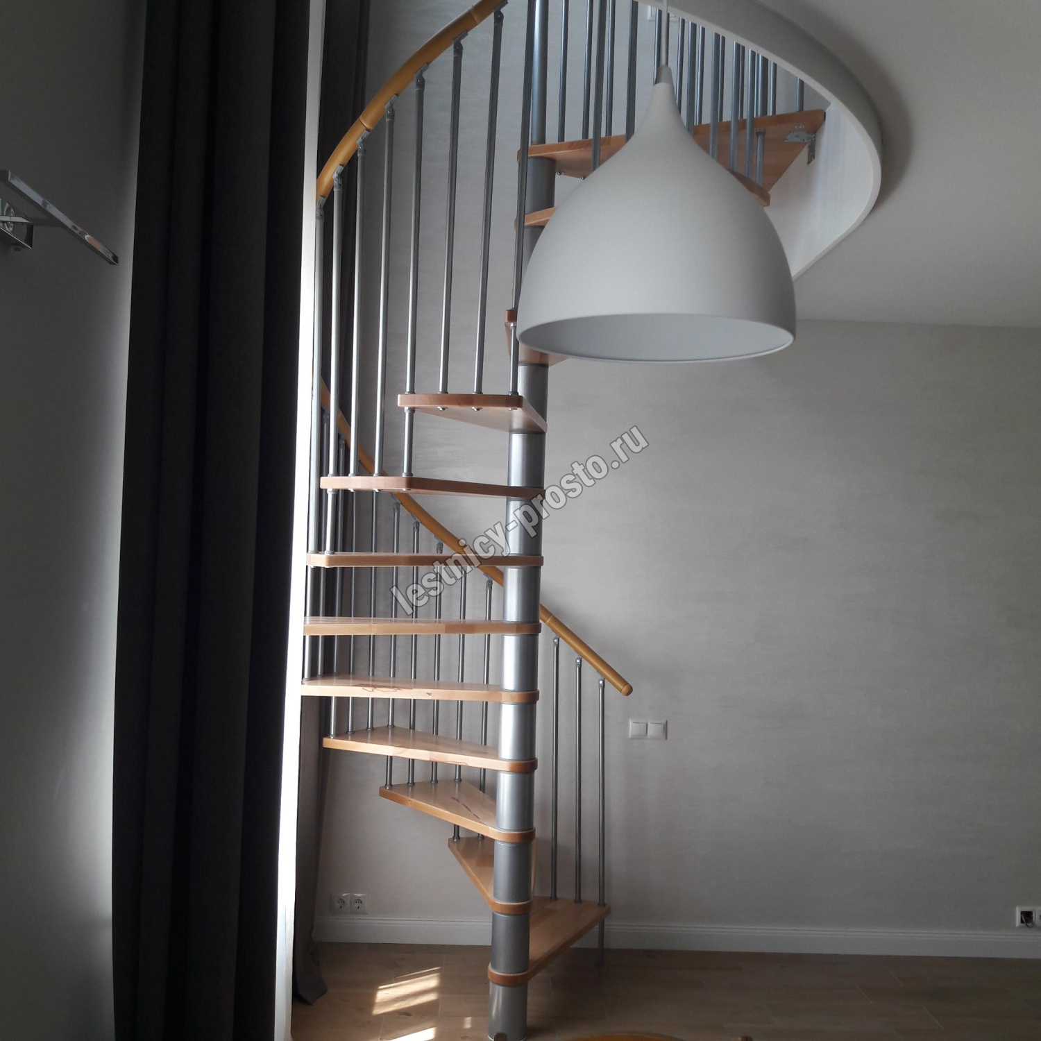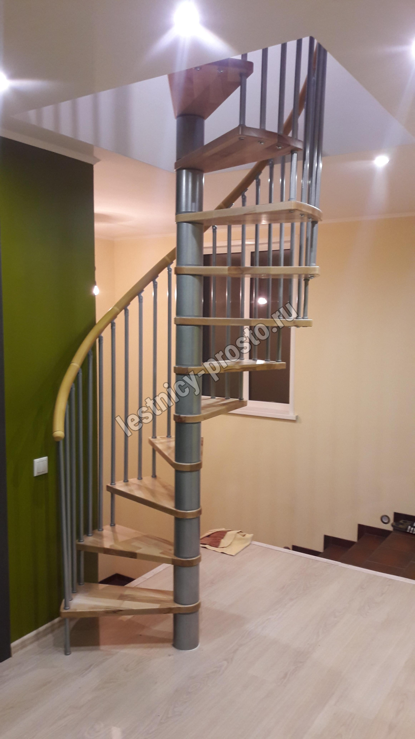 Винтовая лестница SPIRAL WOOD d120 см. серебро, лакированный дуб