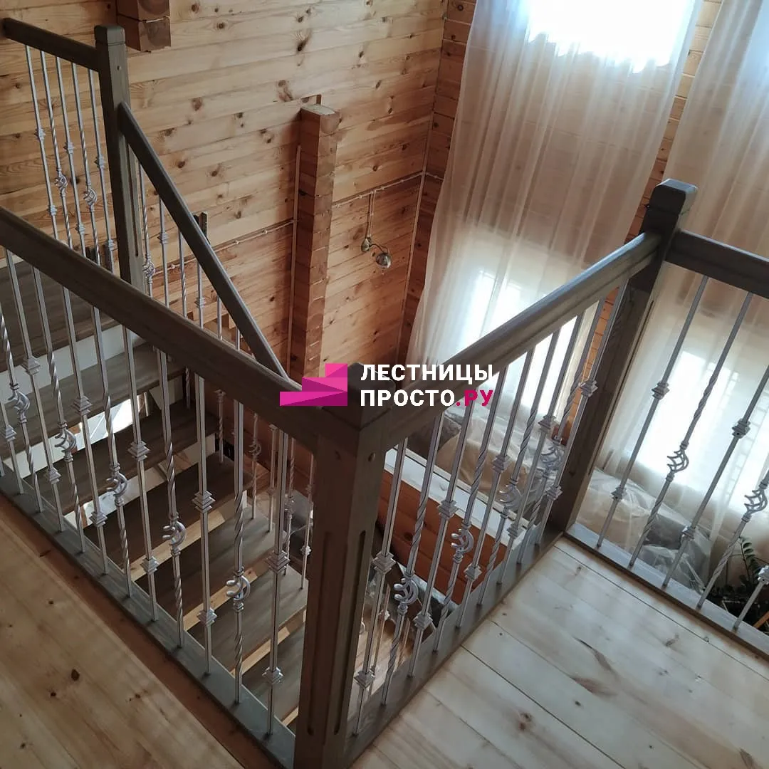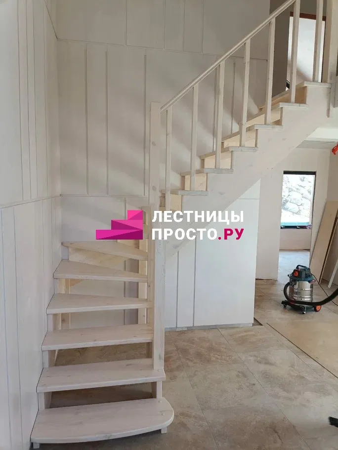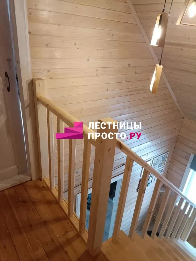 Лестница из сосны с поворотом без покраски