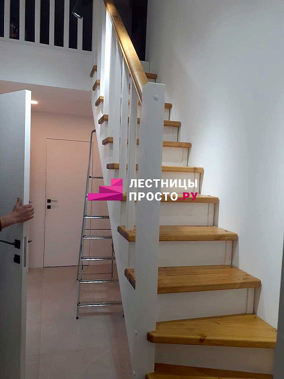У нас есть похожая готовая лестница Лестница из сосны К-001М/7