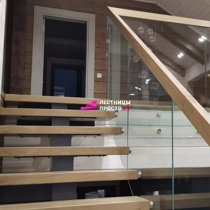 Лестница на центральном каркасе 100х100, ступени ясень ЛП 700